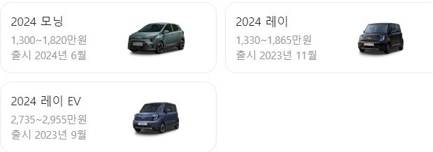 A: 기아 모닝과 레이는 경제적인 소형 경차로, 첫차로 적합하며 유지비가 적게 들어 많은 사람들이 선호하는 모델입니다.